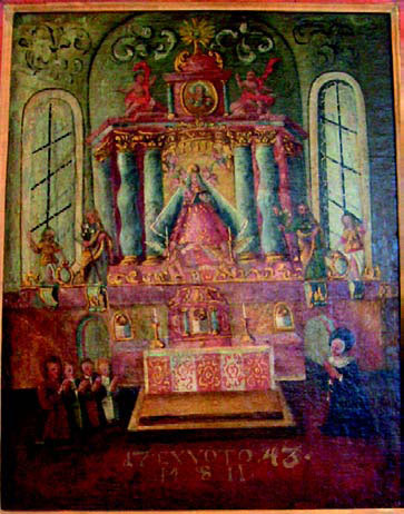 Votivbild um 1743. Es war die Vorlage für die Wiederverwendung des alten Altares.