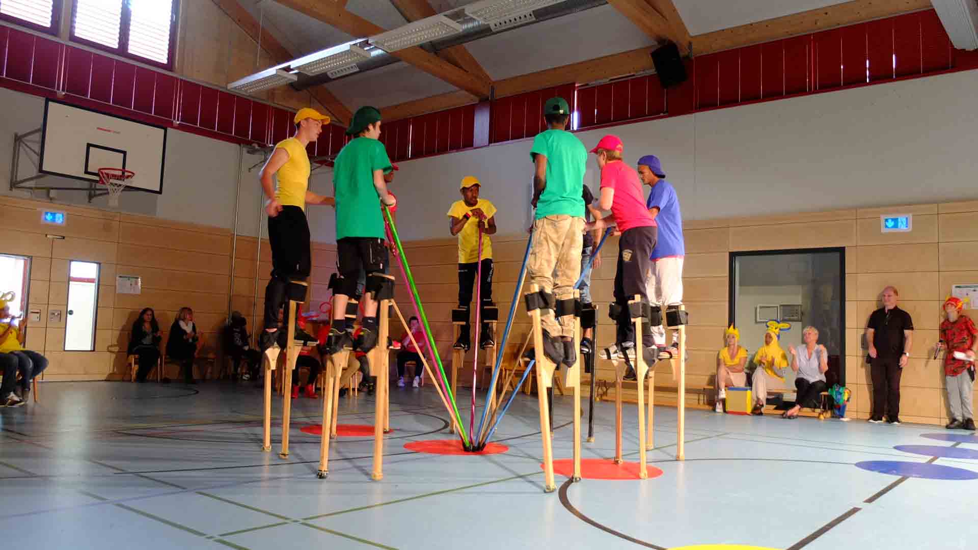 Jugendliche aus 14 Nationen feierten heute ein farbenfrohes und lebendiges Fest der Kulturen. In Spielen ohne Grenzen unterhielten Jugendliche aus der Berufs- und Mittelschule Zinneberg, darunter viele unbegleitete Flüchtlinge, die begeisterten Zuschauer mit Akrobatik, Tanz, Theater und Musik. Die Veranstaltung, zu der auch die Regierungsvizepräsidentin von Oberbayern, Maria Els, einleitende Worte sprach, war der Abschluss einer Projektwoche des KIDZ Projektes (Kultur-Integrationsprojekt), das die Mitarbeiter und Mitarbeiterinnen von Zinneberg in Kooperation mit externen Referenten und den Kollegen und Kolleginnen der Berufsschule Wasserburg vorbereitet hatten. Zum Abschluss luden die Jugendlichen noch zum gemeinsamen Mitttagessen mit selbst bereiteten Spezialitäten aus allen Ecken der Welt.