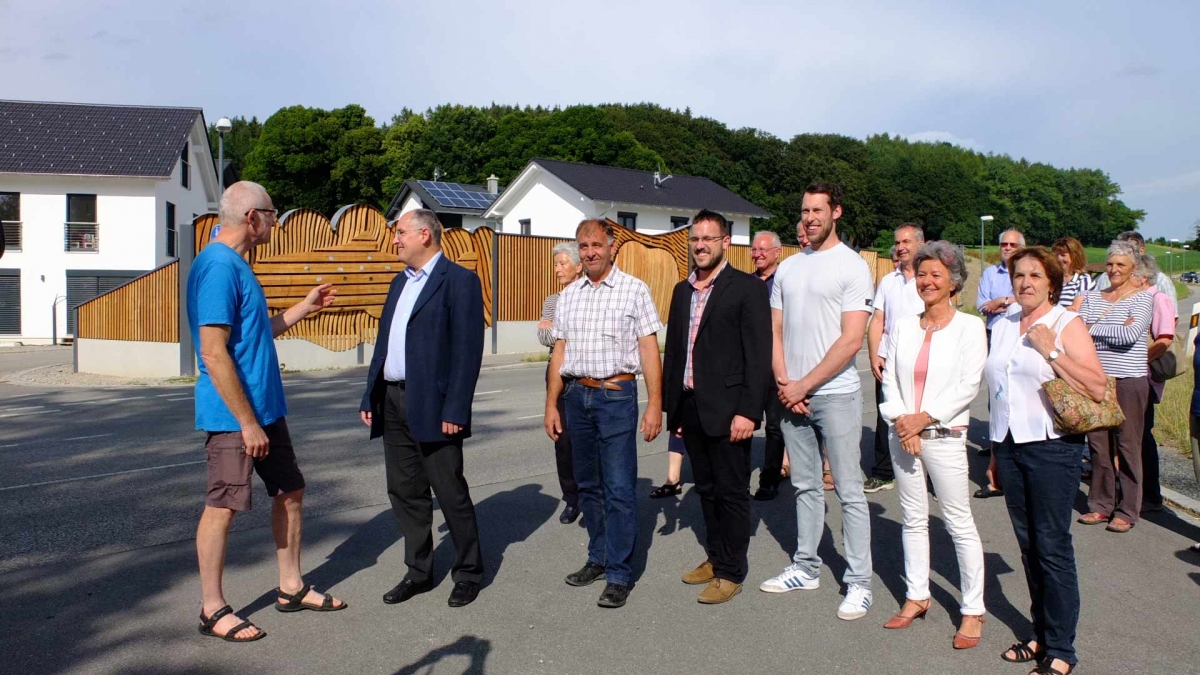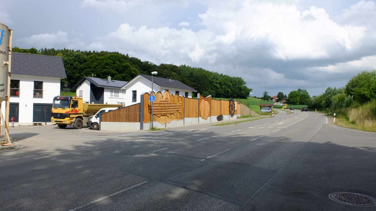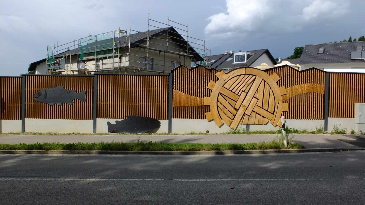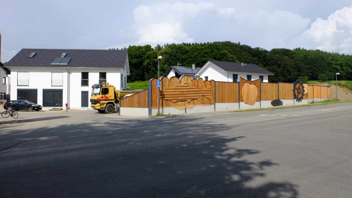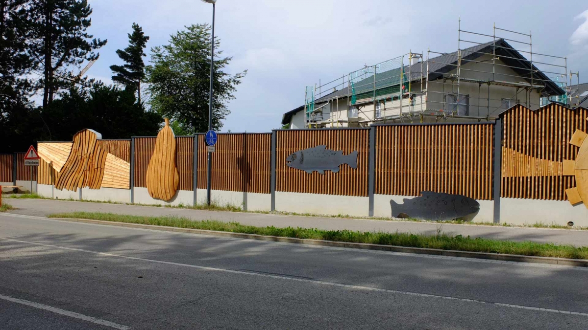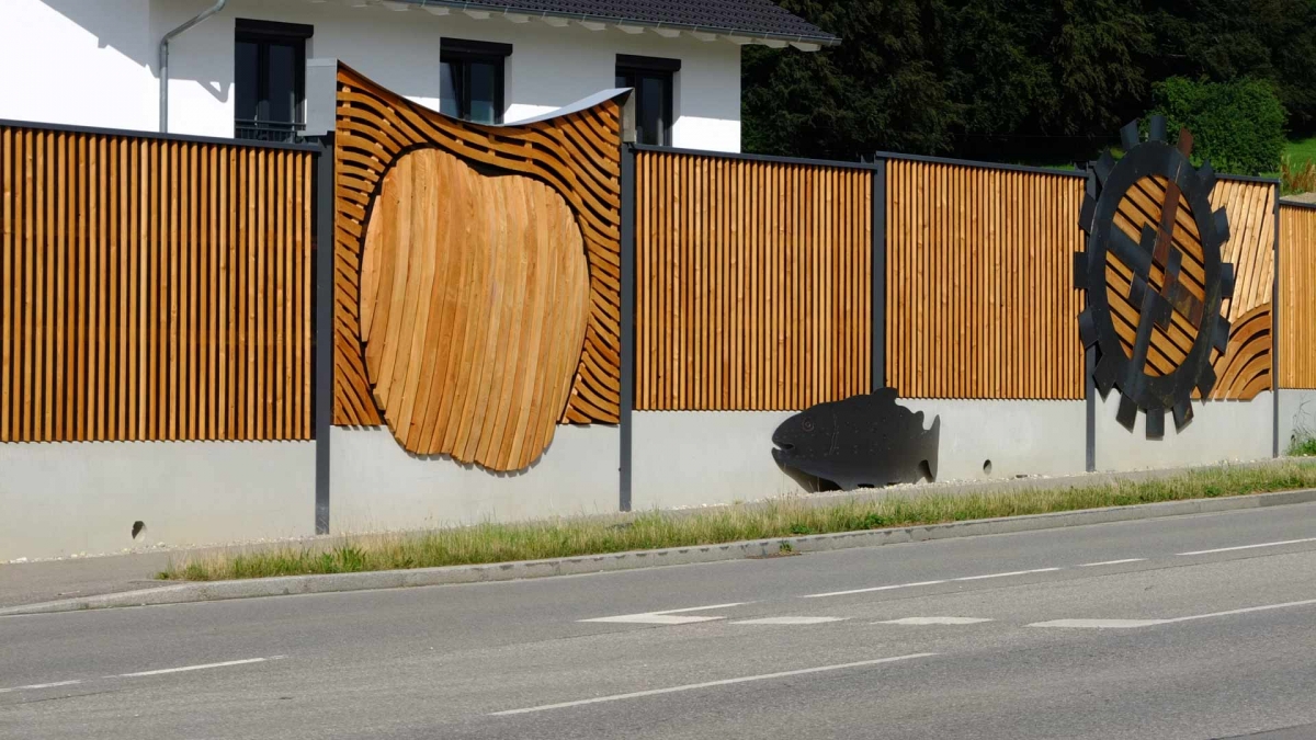 Gemeinsam eröffneten Bürgermeister Josef Oswald und der Künstlers Johannes Gottwald die Lärmschutzwand an der Rotter Straße. Auf Anregung des Gemeinderates, der sich lange und intensiv mit der Gestaltung der neuen Lärmschutzwand an der östlichen Ortseinfahrt von Glonn befasste, erstellte der Künstler ein Konzept, das der Gemeinderat einstimmig befürwortete. Die Kosten für die künstlerische Gestaltung tragen die Gemeinde und Sponsoren, die sich heute, sichtlich erfreut über das Ergebnis, zum Eröffnungstermin einfanden. Gespendet haben die Firmen Peter Gröbmayr Zimmerei, Steinbergers Marktblick, Massive Möbel Casamia, Handfairlesenes, Vier Jahreszeiten Obst&Gemüse, Hotel-Cafe Schwaiger, Schuhe Sport Obermair, Georg Raig Versicherungen, K-Team und der Kulturverein. Mehr zur Gestaltung in der September Ausgabe des Glonner Marktschreibers.