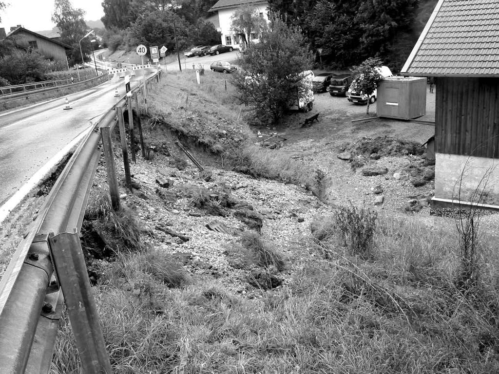 Der Hang an der Straße nach Oberpframmern war vom Regen stark unterspült, die Fahrbahn hatte sich gesenkt und musste bis zur Ausbesserung gesperrt werden.