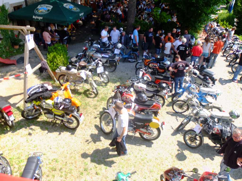 Haflhof, 08.07.2017, 12 Uhr: Vor ein paar Jahren fing’s klein an, mittlerweile hat sich das Zündapptreffen im Haflhof zu einer Premium-Veranstaltung für alle Zündapp-Enthusiasten gemausert. Bereits um 12 Uhr haben sich 83 Zündapp Besitzer bei Elke Ott vom Haflhof registrieren lassen. Sehr zur Freude von Veranstalter Georg Ott, der selbst im ehemaligen Stall des Haflhofs mehrere Zündapps in artgerechter Haltung sein eigen nennt.