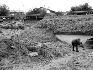 Die Schäden in der Gemeinde Aying erstreckten sich überwiegend auf die Straßen, die dem fließenden oder vielmehr bergab stürzenden Wasser als Regenrinnen dienten: Zwischen Spielberg und Loibersdorf (645m), an dem kleinen Durchlass mit dem Löschweiher in Spielberg, an der Straße von Spielberg ins Reisenthal… Von Spielberg ins Reisenthal wurden die Straßen komplett weggerissen oder zumindest bis zur Unbefahrbarkeit unterspült. Vom Waldweg am Tellergraben war ebenfalls kaum noch etwas vorhanden. „Große Teile des damals betroffenen Gebietes entwässern in den Tellergraben, damit in den Lauser Weiher und damit nach Glonn,“ fasst Eichler zusammen. „Glonn hat´s wirklich bös erwischt.“
