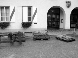 Seit dem 10. August 2002 haben sich viele Bürger in den betroffenenen Gebieten ihre eigenen Sandsäcke zugelegt. Damals konnte man die Hochwasser-Sperren am Marktplatz vor dem Rathaus abholen.
