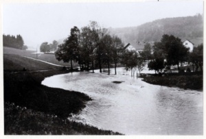 Die Bilder, die sich 2002 dem Betrachter boten, ähnelten denen vom Hochwasser 1940, von dem es noch ein paar alte Fotos gibt. Von 1899 (Pfarrer Niedermair notiert in seiner Chronik: 1896) gibt es zwar keine Bilddokumente mehr. Es wird wohl damals schon so ähnlich ausgeschaut haben – um die Wiesmühle herum und am Kupferbach entlang. In der Niedermair-Chronik ist neben zahlreichen Hagelunwettern auch das vor-vorletzte Hochwasser verzeichnet: „Am 17. Juni 1896 schlug der Schauer in Haslach, Mattenhofen, Frauenreuth, Balkham, Kreuz und Reinsdorf; darauf folgte Hochwasser.“ Die Hagelunwetter befand Pfarrer Niedermair in seiner Chronik aber stets viel erwähnenswerter als die Hochwasser-Ereignisse, die zur damaligen Zeit überwiegend unbewohnte Gebiete trafen und deshalb lange nicht so dramatische Schäden wie heute anrichteten.