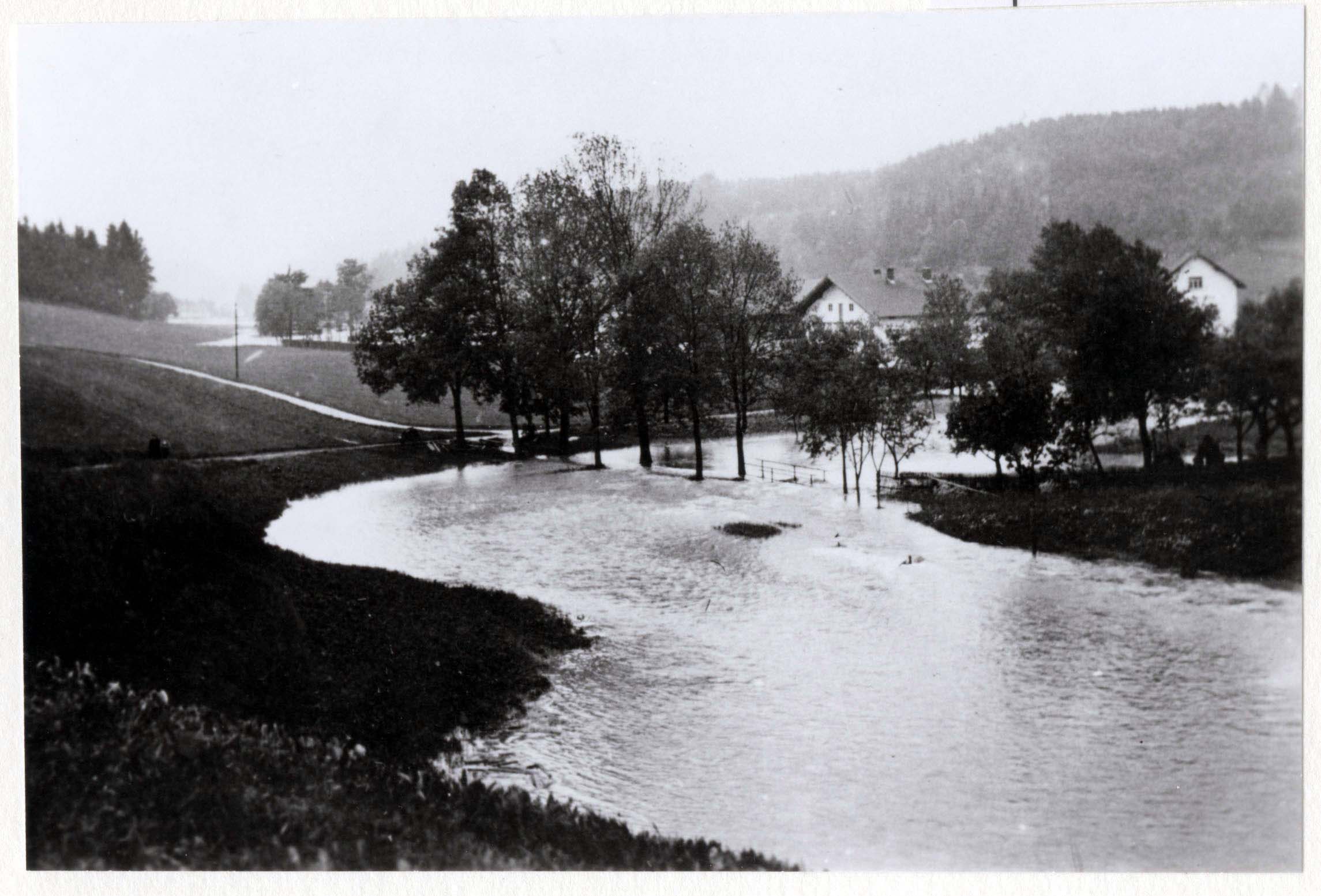 Das Hochwasser von 1940 an der Hammerschmiede an der Feldkirchner Straße.