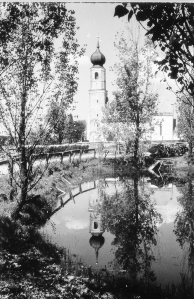 wie sein Turm in Sandizell in gemessenem Schwung reizend bekuppelt worden. Und der dichtende Hellmut von Cube – er lebte nach dem letzten Krieg oben in Balkham – hätte sei­nen liebenswerten Essay über Glonn im Jahre 1949 nicht mit einem Schuß ins Schwarze enden lassen können: „Nur eins ist ein Kreuz und ein Jammer, eine Schmach und eine Schande: das spitze Kirchturmdach, dem schönen Bau unselig aufgepfropft. Da hinauf gehört wieder eine Zwiebel, punktum.“ Aber nicht einmal der baufreudige Willensstärke.