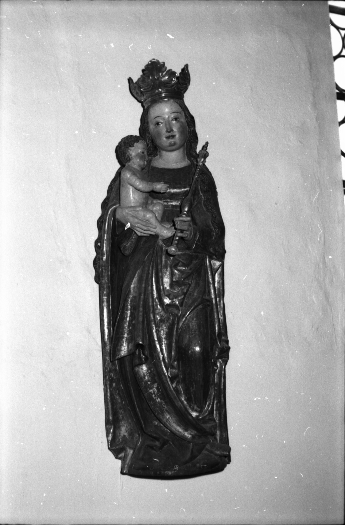 Das wundervolle Götschkreuz mit der schmerz­haften Madonna hat nie ins Gefängnis des Speichers gemußt. Wann hätten jemals Mütter auf eine Mutter der Schmerzen verzichten können? In überlängten Formen ist die Gruppe (an der Nordseite des Schiffes) geschaffen. Christi Antlitz ist fast schon der Marter ent­ronnen und schon heimlich dem Hellen und Heiteren verwandt. Adelheid Unger, die wie sonst niemand das Gesamtwerk von Götsch kennt, weiß es: „Götsch hat diesen Ausdruck vorher und nachher nie wieder erreicht.“