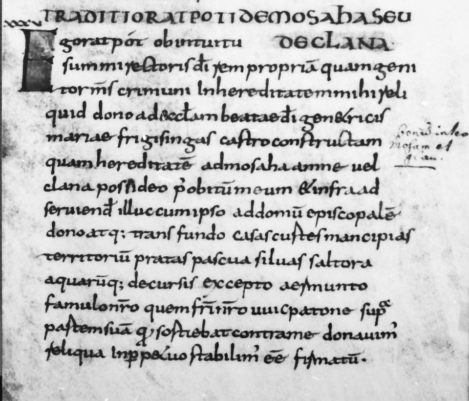 Und doch liegt das Jahr 774 in seiner geschicht­lichen Frühe weit von uns. Damals hat der Sohn des Criminus, der Ratpot, seinen herr­lichen Besitz mit Ländereien, schluchtenreichen Wäldern, wie er schreibt, mit fallenden Ge­wässern Freising geschenkt, dem Bischof von Freising, dem Nachfolger des Korbinian.