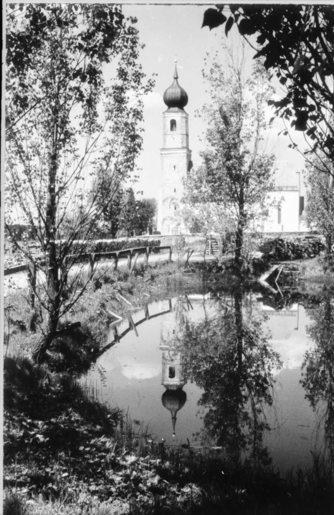 wie sein Turm in Sandizell in gemessenem Schwung reizend bekuppelt worden. Und der dichtende Hellmut von Cube – er lebte nach dem letzten Krieg oben in Balkham – hätte sei­nen liebenswerten Essay über Glonn im Jahre 1949 nicht mit einem Schuß ins Schwarze enden lassen können: „Nur eins ist ein Kreuz und ein Jammer, eine Schmach und eine Schande: das spitze Kirchturmdach, dem schönen Bau unselig aufgepfropft. Da hinauf gehört wieder eine Zwiebel, punktum.“ Aber nicht einmal der baufreudige Willensstärke.