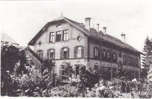 Die Klosterschule einige Jahre nach der Erbauung mit einem üppigen (Gemüse)-Garten zur Versorgung der Klosterschwestern.                        Bild: Archiv Markt Glonn/Sammlung Kulturverein