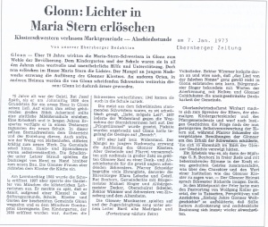 Gewidmet aber seien diese schulgeschichtlichen Rückblicke den klösterlichen Lehrkräften vom Haus Maria Stern“, allen übrigen Lehrkräften der Schule, die zusammen über viele Jahrzehnte an der Erziehung und Bildung der Glonner Mädchen gearbeitet haben, sowie allen ehemaligen Schülerinnen, heute Mütter und Großmütter hoffnungsvoller Buben und Mädchen!