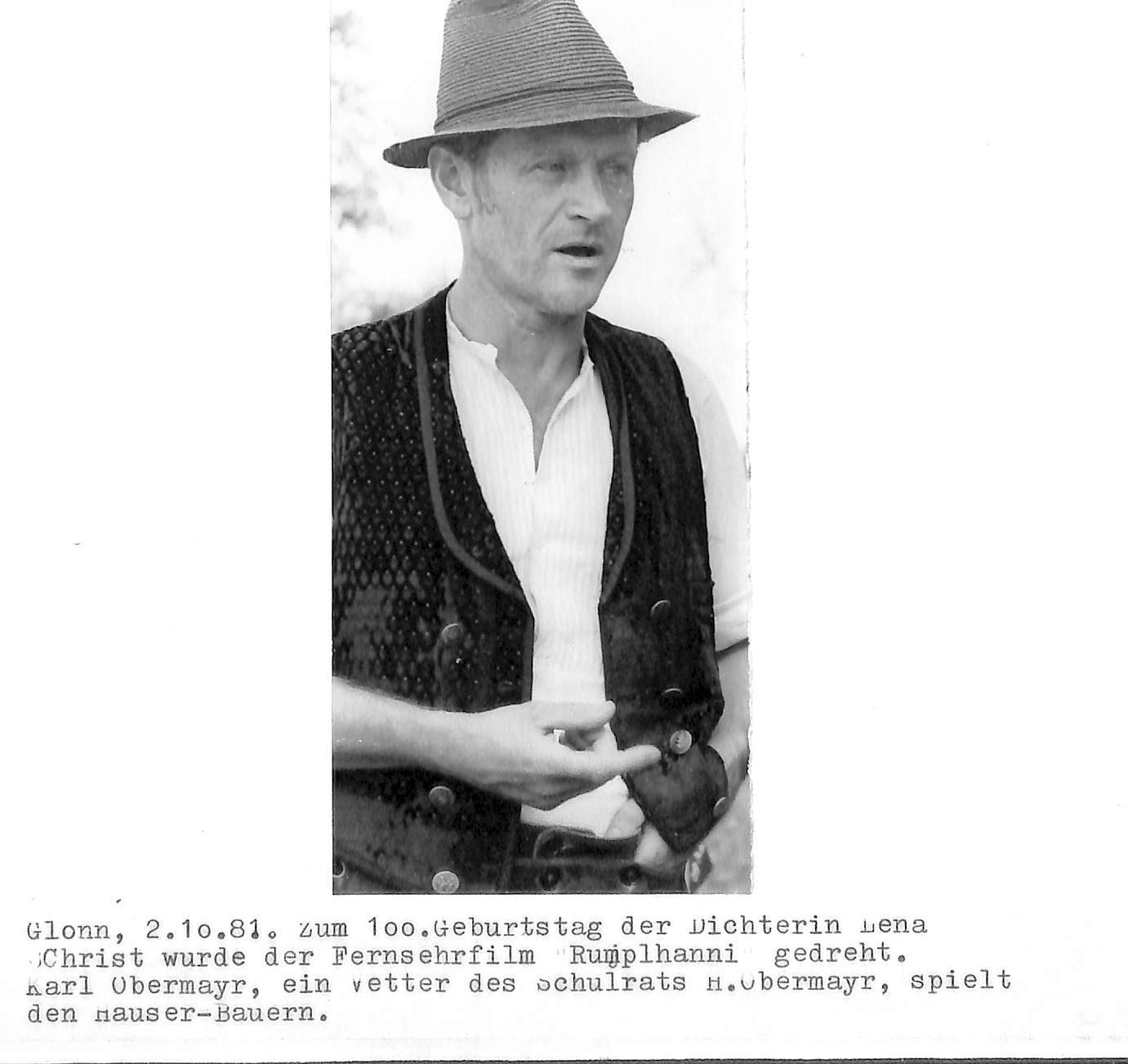 Hätte Hofmiller diese Rumplhanni-Verfilmung gesehen, hätte er sie höchstwahrscheinlich ebenfalls als Quellenwerk mit aufgeführt. Schade! Aber auch der 1974 verstorbene Glonner Wolfgang Koller, er war wohl der bedeutendste Lena-Christ-Förderer, er hat die Dich­terin noch persönlich gekannt, wäre von dieser Verfilmung hell be­geistert gewesen.