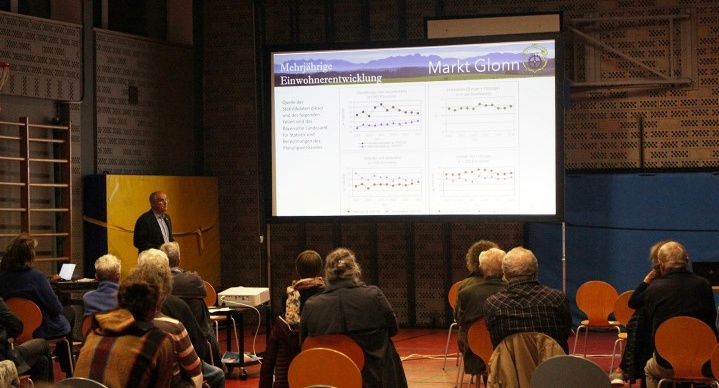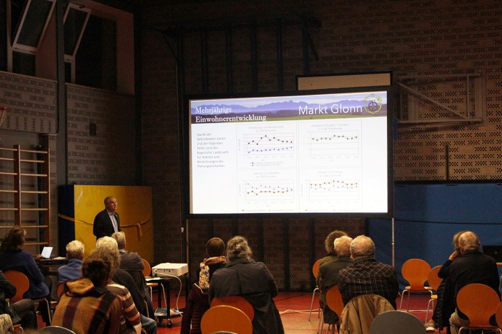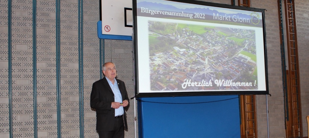Vor ca. 50 Besuchern eröffnete Bürgermeister Oswald am 29.09.2021 um 19.30 Uhr in der Turnhalle der Grund- und Mittelschule Glonn die Bürgerversammlung des Jahres 2021 (Berichtsjahr 2020).